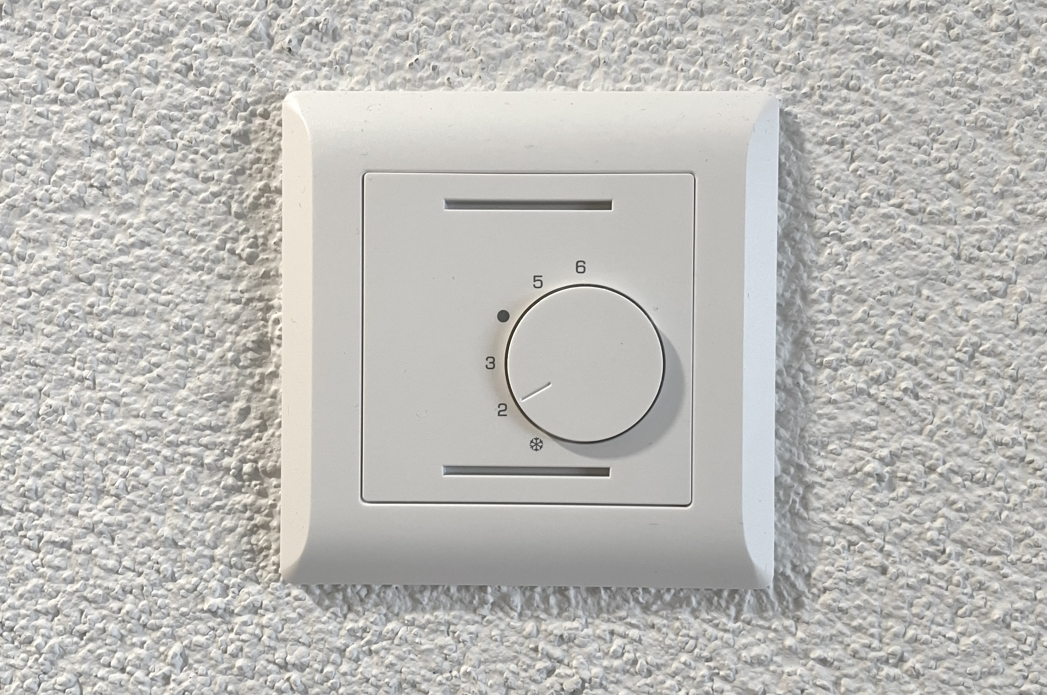 Ons huis heeft vloerverwarming en een controlepaneel voor de slaapkamers en de woonkamer. Met de verschillende standen stel je de volumestroom in, oftewel hoe vaak of hoeveel warm water er door de vloerverwarming loopt. In de badkamer staat de vloerverwarming altijd aan.